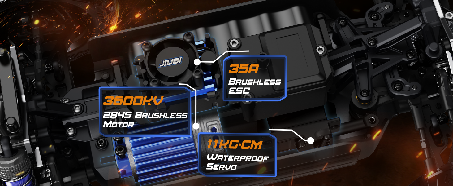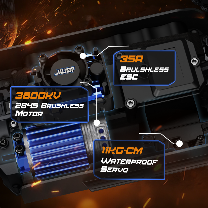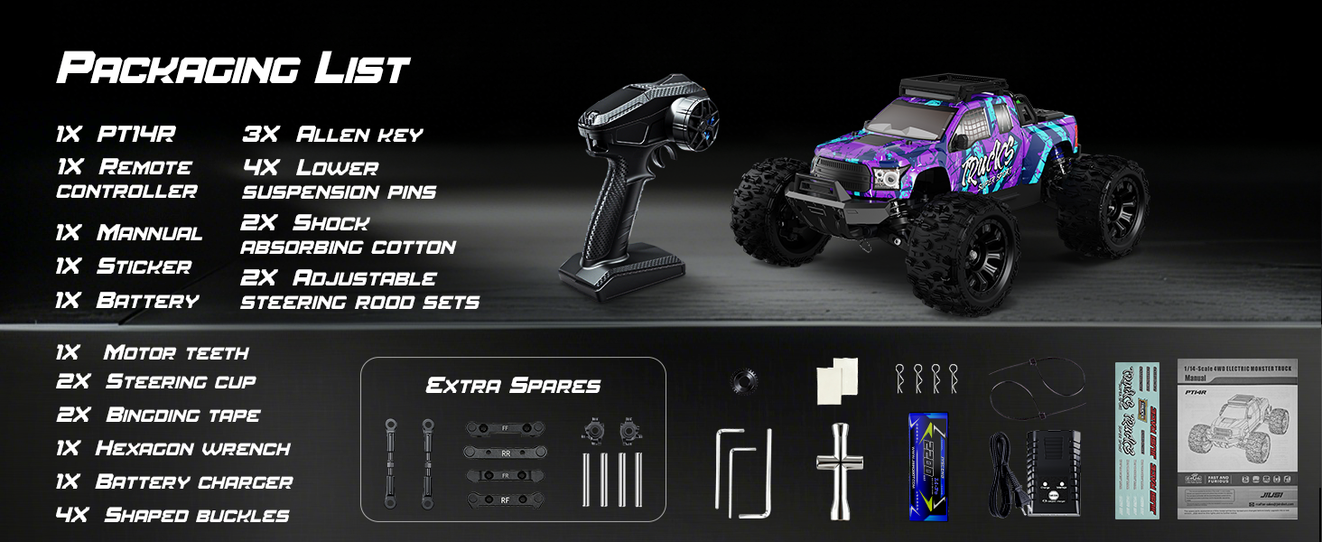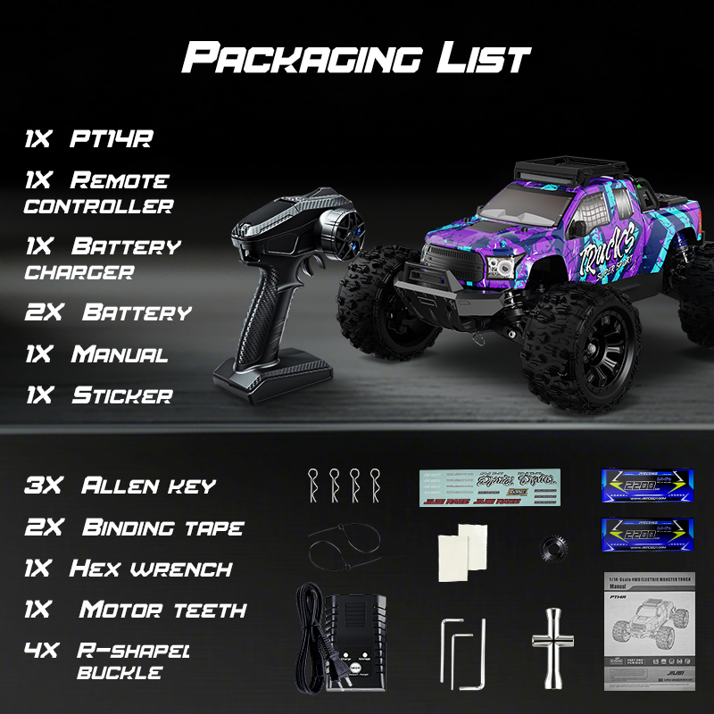 JIUSI PT14R 1/14 RC Monster Truck - 50mph Brushless 4WD Waterproof Remote Control Car with 3S Battery RTR